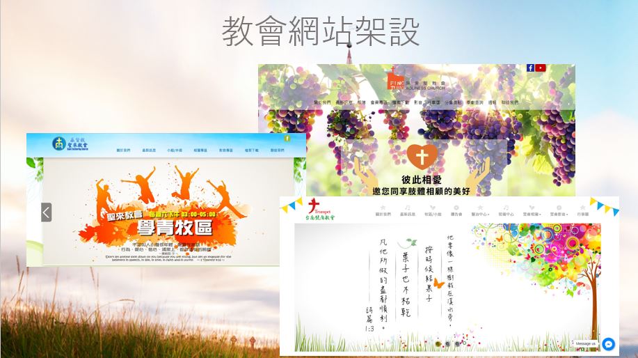 教會網站不只是網站,也是您管理教會的好幫手!具有牧養輔助系統、週報製作系統、奉獻管理系統的網站,幫助您處理行政的同時,也在維護經營教會網站唷!體恤到教會非營利機構,我們用市面上不可能出現的低價提供教會這些服務,為的就是期待宣教無國界的願景!